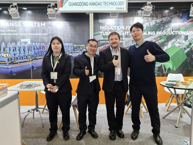 漢高科技亮相展會,與全球各地的不銹鋼制管企業(yè)進行技術交流。
